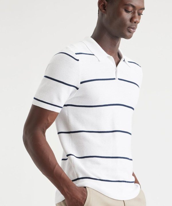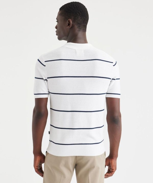 An elevated short sleeve polo sweater made of soft recycled fibers — and it’s easy to care for.