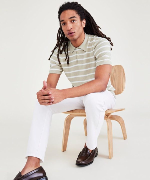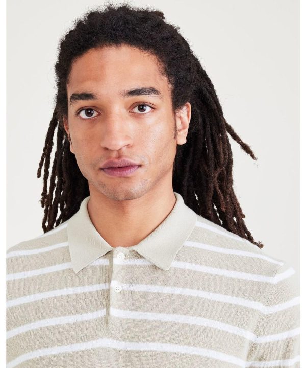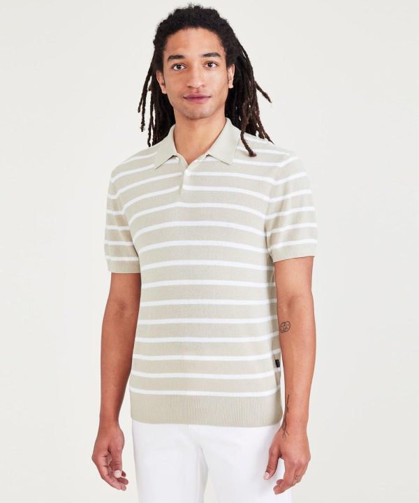 An elevated short sleeve polo sweater made of soft recycled fibers — and it’s easy to care for.